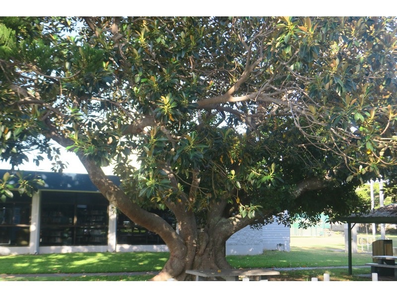 The Moreton Bay Fig occurs naturally in coastal sub-tropical rain forests of eastern Australia and often begins life growing on the trunk of another tree which is eventually enmeshed in aerial roots and killed. (Look for examples of this growth as you continue this walk.) This species was often retained as a feature on farmland or for shade when rainforest areas were cleared for cropping and dairy farms. It has been widely planted in large open parks and gardens.
